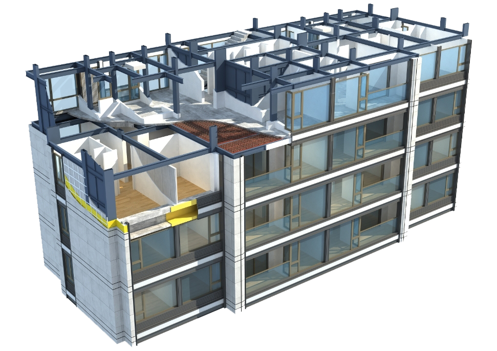 隱式框架鋼結(jié)構(gòu)住宅體系構(gòu)件隱藏于主要建筑墻體內(nèi),室內(nèi)無凸梁凸柱,鋼構(gòu)件隨建筑墻體的走向靈活布置,適應(yīng)住宅建筑通風(fēng)采光、全明戶型、室內(nèi)流線優(yōu)化的布局要求,能同時(shí)滿足大跨度、大空間、戶型可變性、高得房率等性能條件。同時(shí),鋼結(jié)構(gòu)延伸性好,在地震下能耗散和吸收較多的能量,降低脆性破壞的危險(xiǎn)程度,是國際公認(rèn)的抗震性能最好的建筑體系。